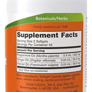 Hỗ trợ chức năng tiêu hóa bình thường với NOW Supplements Peppermint Gels with Ginger & Fennel Oils 90 Softgels