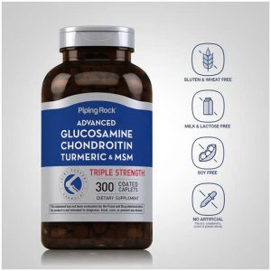 - PipingRock’s Advanced Triple Strength Glucosamine Chondroitin MSM Plus Turmeric cung cấp 1.500 mg glucosamine sulfate mạnh mẽ, cùng với chondroitin và MSM trong một khẩu phần viên nén hai lớp tối ưu.