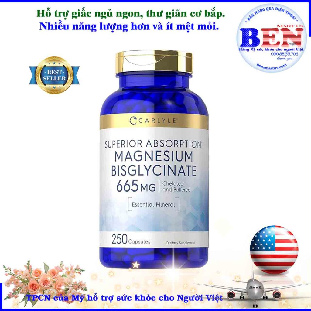 - Carlyle’s Superior Absorption Magnesium Glycinate 665 mg là một dạng cao cấp của khoáng chất thiết yếu này. Công thức của chúng tôi là Không chứa Gluten, Không biến đổi gen và tự nhiên không có chất bảo quản. Viên nang giải phóng nhanh chóng làm cho nó trở nên siêu tiện lợi để thêm vào bất kỳ thói quen nào. Nhận hỗ trợ đặc biệt với giá trị đáng kinh ngạc trên tất cả các khoáng chất với Carlyle!