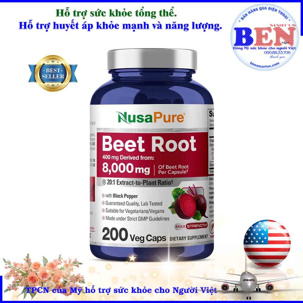 Hỗ trợ huyết áp khỏe mạnh với NusaPure Beet Root 8,000mg 200 Veggie Caps