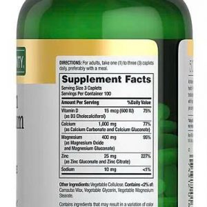 - Được thiết kế với sự tiện lợi, Nature’s Bounty Calcium Magnesium & Zinc có dạng viên nang bao phim dễ nuốt. Liều lượng khuyến cáo là một đến ba viên mỗi ngày, tốt nhất là uống cùng bữa ăn.