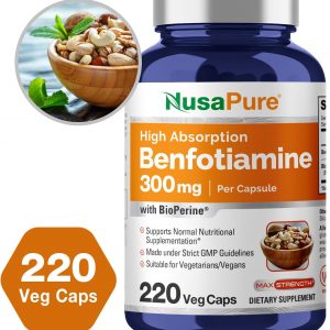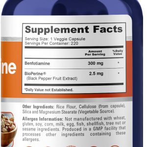 - Benfotiamine hấp thụ cao 300mg mỗi viên nang. 220 viên nang chay cho nguồn cung cấp 220 ngày.
