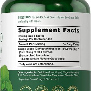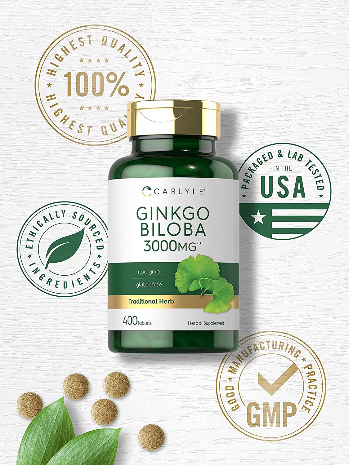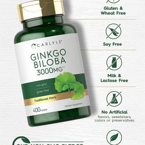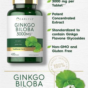 Hỗ trợ sức khỏe não khỏe mạnh với Carlyle Ginkgo Biloba 3000mg 400 Tablets