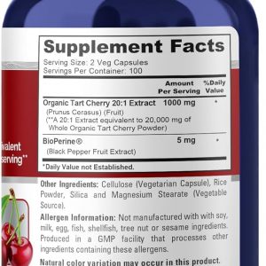 Be the first to review “Hỗ trợ sức khỏe tim mạch và gout khỏe mạnh với Tart Cherry 20,000mg 200 Viên”