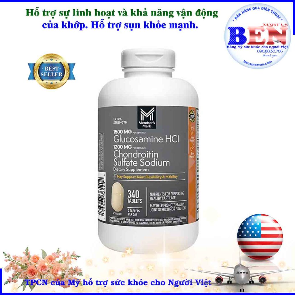 - Member’s Mark Glucosamine Chondroitin 1500mg 340 viênGlucosamine là một hợp chất giúp duy trì sức khỏe, cấu trúc xương chặt chẽ và duy trì chức năng xương, giúp con người hoạt động hiệu quả và linh hoạt.