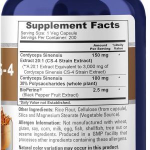 - Đông trùng hạ thảo Cordyceps Sinensis CS-4 hấp thụ cao với Bioperine.